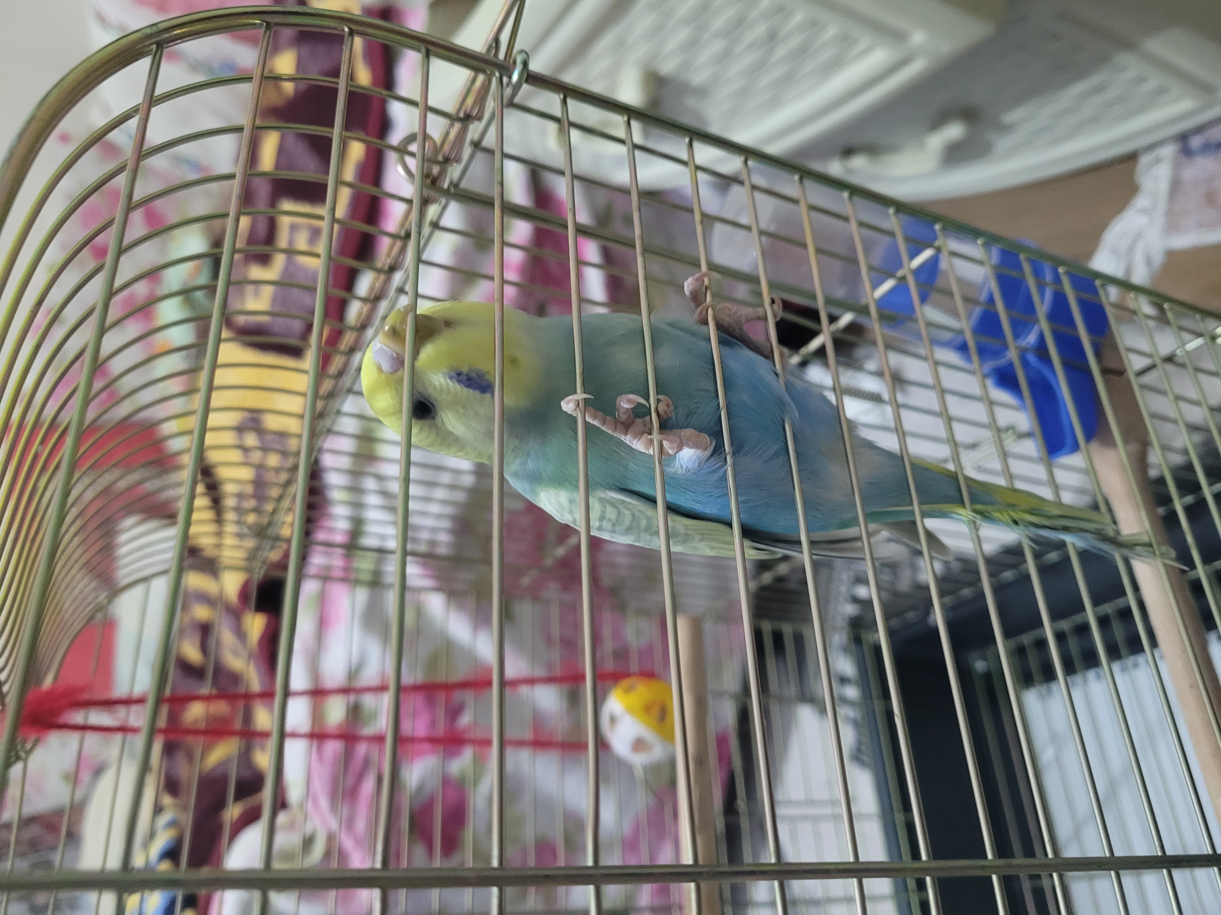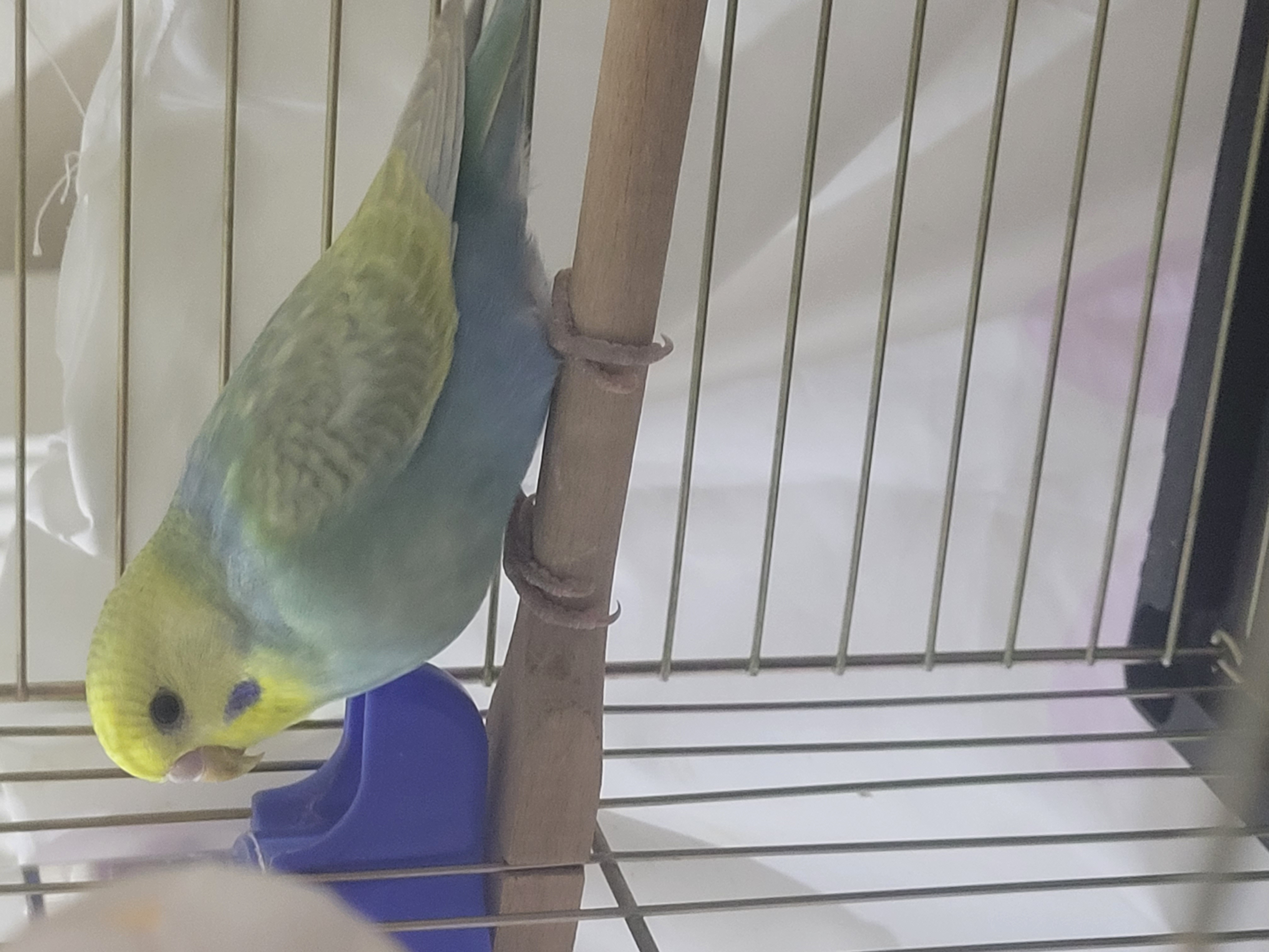 Merhaba bir müddet bu şekilde tellere asılı uyur yada bekleyebilir stres ve kendini güvensiz hissettiği için. Zamanla alışır merak etmeyin. Çok güzel bir erkek 🌸